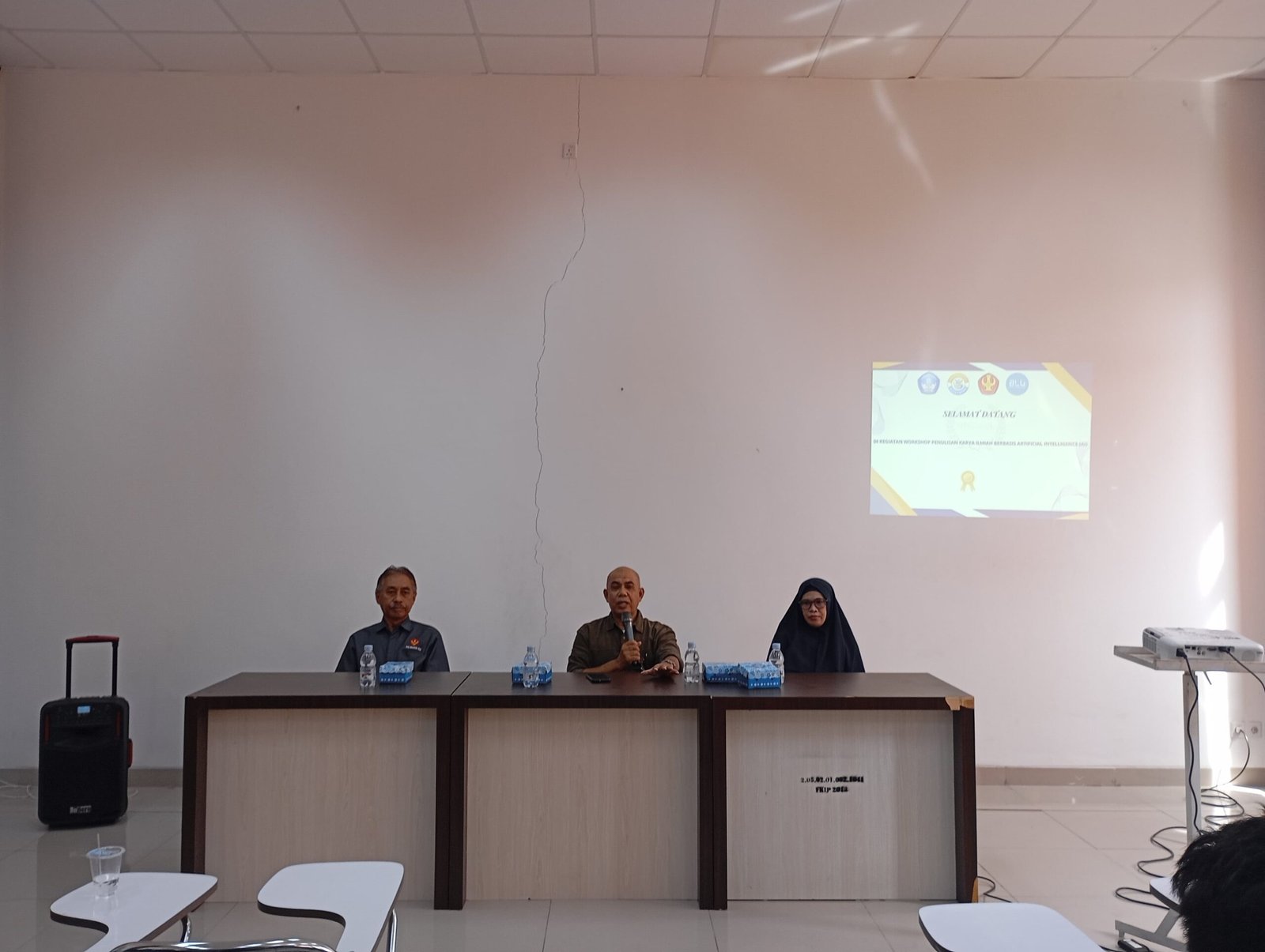 Acara dibuka secara resmi oleh Dr. Jamaludin, M.Si selaku dekan FKIP , yang dalam sambutannya menyampaikan bahwa kegiatan ini merupakan langkah nyata Program Studi PPKn dalam mengembangkan kemampuan literasi digital yang selaras dengan visi universitas sebagai pusat unggulan pendidikan berbasis teknologi dan nilai-nilai Pancasila. Dari dokumentasi yang ditampilkan, terlihat bahwa kegiatan berlangsung dalam suasana antusias dan interaktif. Para peserta dengan serius mengikuti setiap rangkaian acara, mulai dari sesi pembukaan, penyampaian materi, diskusi, hingga sesi praktik langsung. Kehadiran para narasumber yang kompeten di bidang teknologi pendidikan dan penulisan ilmiah memberikan warna tersendiri dalam workshop ini. Mereka menyampaikan berbagai informasi penting terkait bagaimana memanfaatkan AI dalam membantu proses penulisan karya ilmiah, mulai dari brainstorming ide, perumusan latar belakang, penulisan tujuan dan metodologi, hingga pengecekan tata bahasa dan plagiarisme.